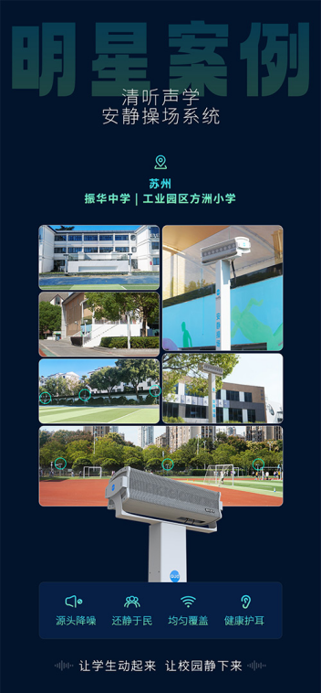 近日,苏州振华中学与苏州工业园区方洲小学相继引入清听声学自主研发的安静操场系统(操场定向声广播设备),以创新声学科技探索校园声环境治理新路径。