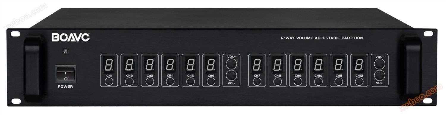 3.12路分区控制输出,每路分区音量可独立控制,互不干扰,每路分区输出功率为300W